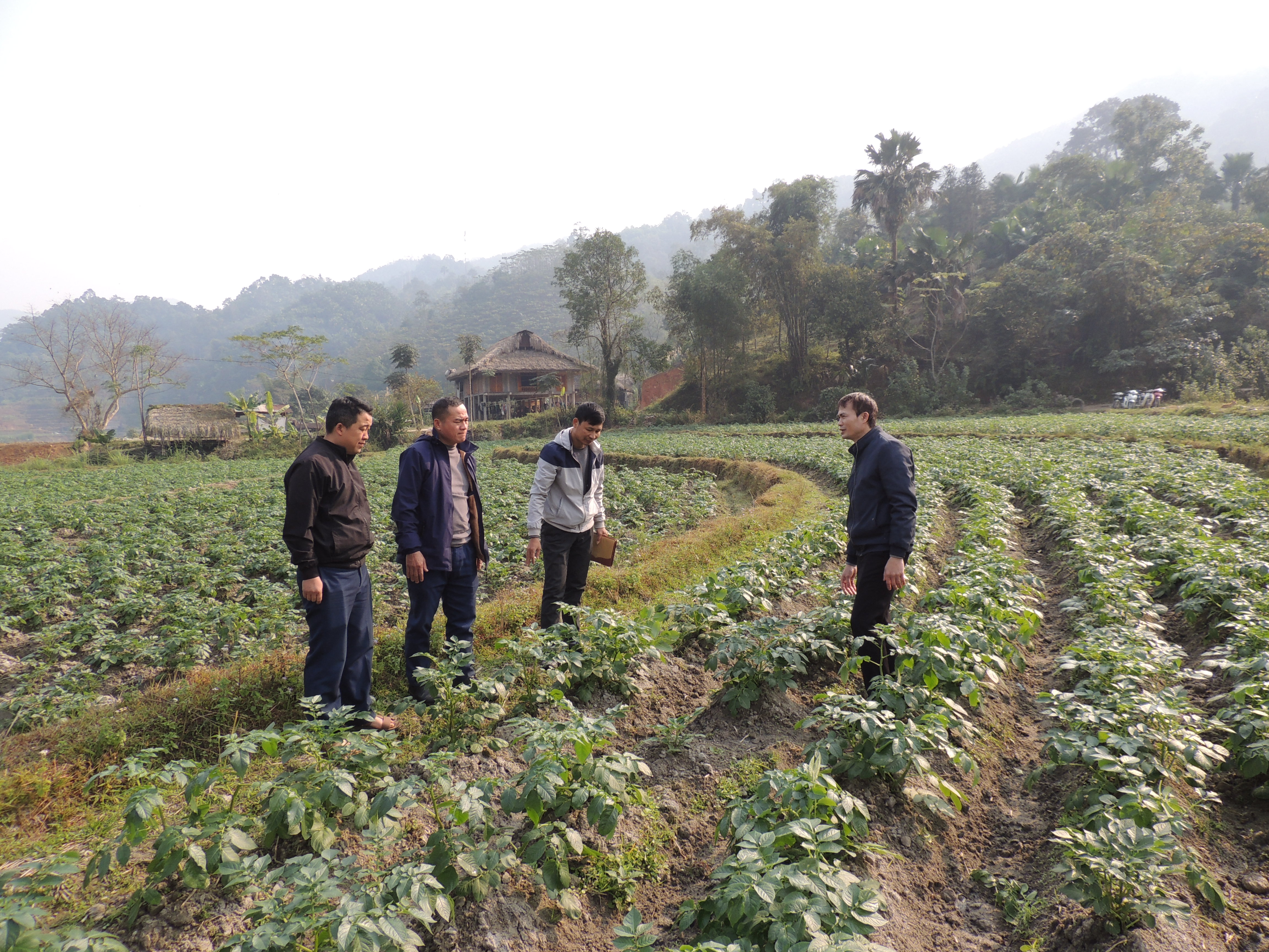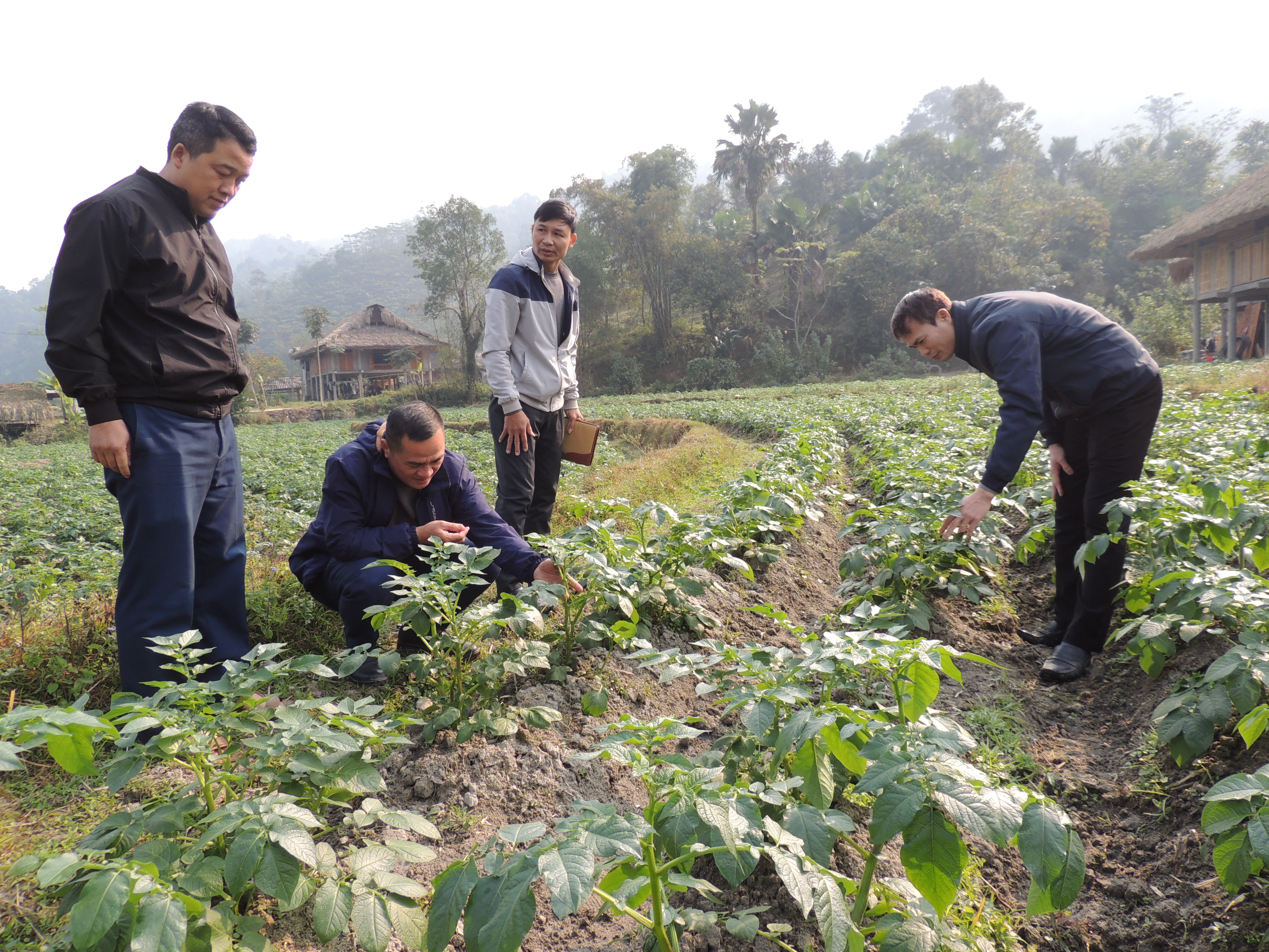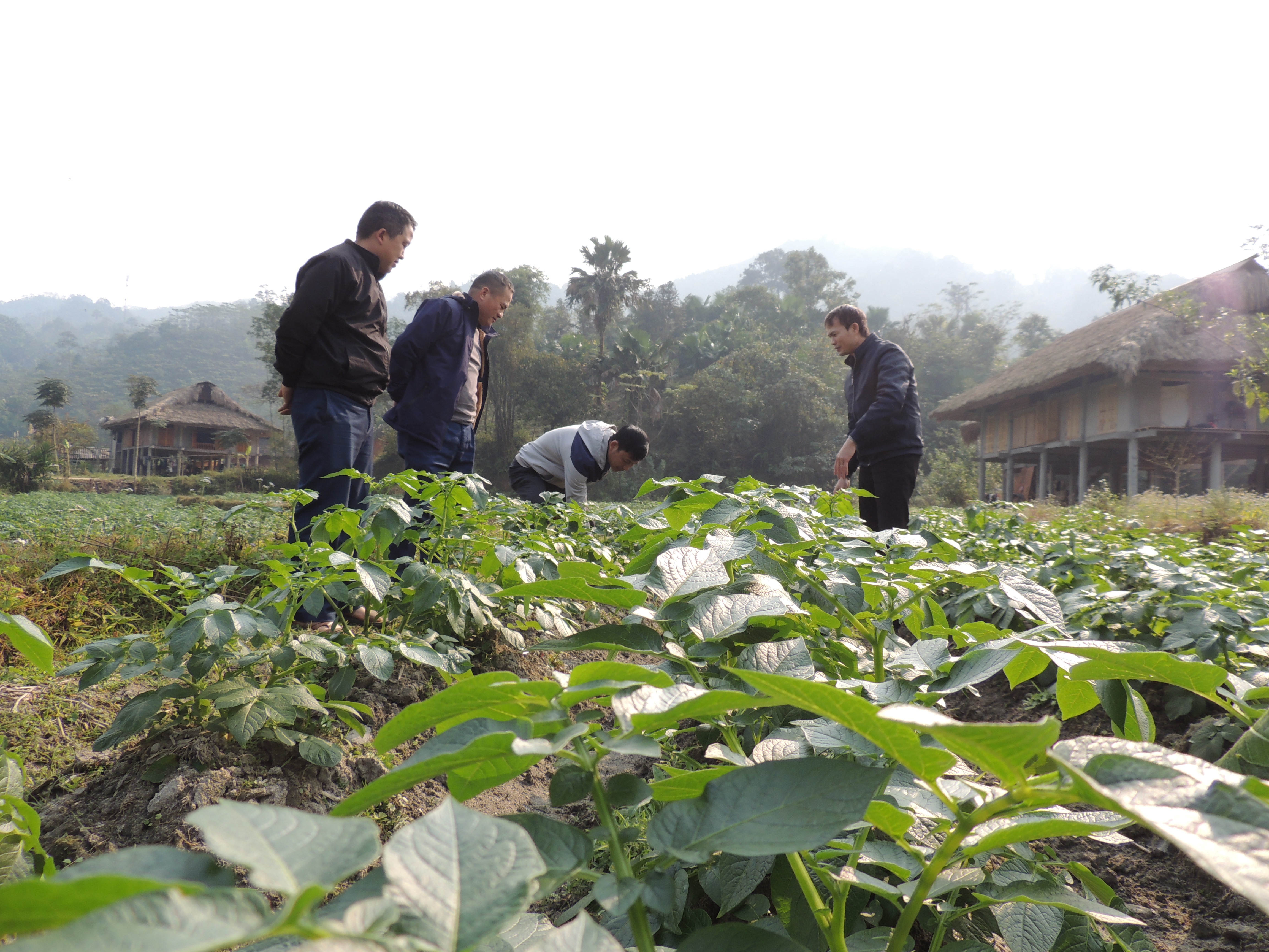 Đồng chí Nguyễn Văn Hưng, Bí thư Đảng ủy, Chủ tịch HĐND xã Tiên Nguyên đã đi kiểm tra mô hình trồng khoai tây vàng tại thôn Tân Tiến